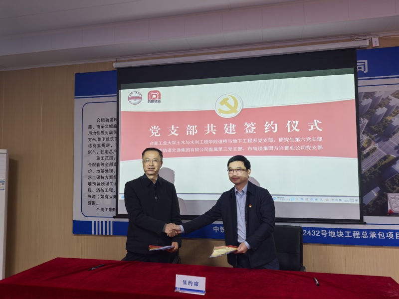 在党支部共建、产学研用座谈交流会上,市轨道集团直属第三党支部书记、法务审计部、成本合约部部长席方珅首先致辞,详细介绍企业发展概况——从轨道交通线路建设到“轨道+TOD”综合开发的业务布局,直观展现国企在城市基建领域的深耕成果;分享党建工作特色,倡议后续校企双方开展更多形式的合作共建工作,推动党建与生产经营深度融合。随后,黄色直播-免费黄色直播 党委书记王东坡和市轨道集团党委委员、副总经理、方兴置业公司董事长张明权分别代表校企双方负责人,签署共建协议。